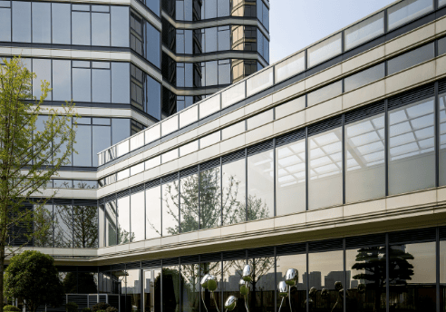 园区采用“围合式”布局,融合“钱塘江”水韵灵感,映衬周围自然生态,配合全冠移植的特色名贵树种,营造出环景畅谈式“艺术公园”。