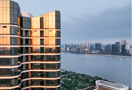 正对钱塘江与江河汇城市IP,270°环幕视野俯瞰江景及对岸钱江新城天际线