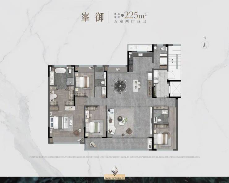 225㎡五居:5室2厅4卫,顶层复式结构,带大面积露台