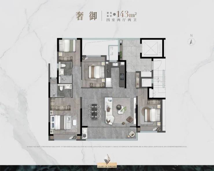 179㎡四居:4室2厅3卫,主卧套房设计,配备独立衣帽间