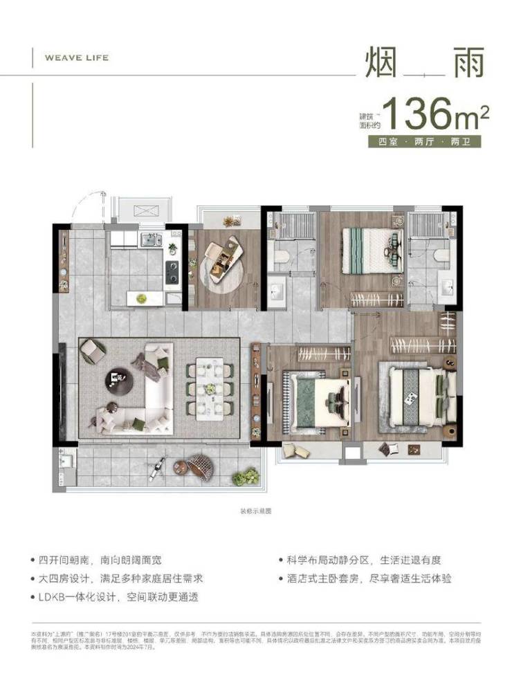 136㎡四房两厅两卫:总价约310万(单价约22800元/㎡)