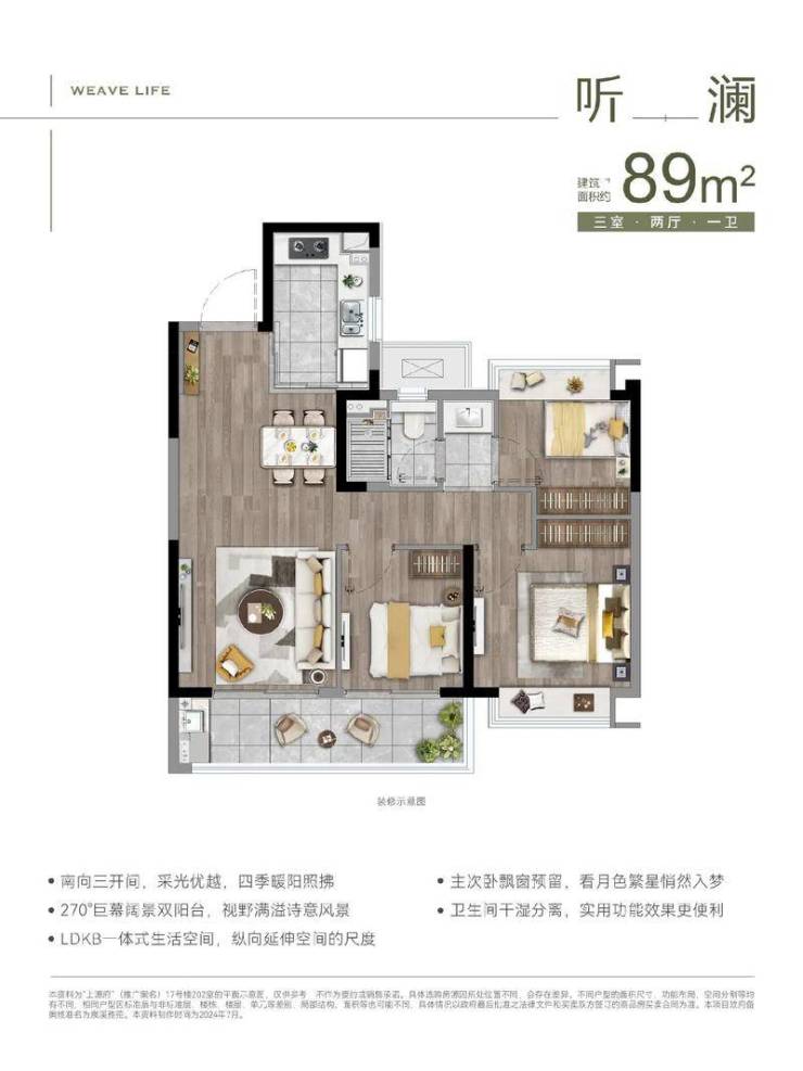 89㎡三房两厅一卫:总价约192万起(单价约21500元/㎡)