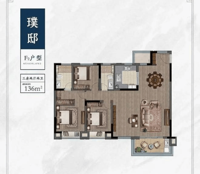 143㎡四房:南北双阳台,主卧套房带衣帽间,动静分区