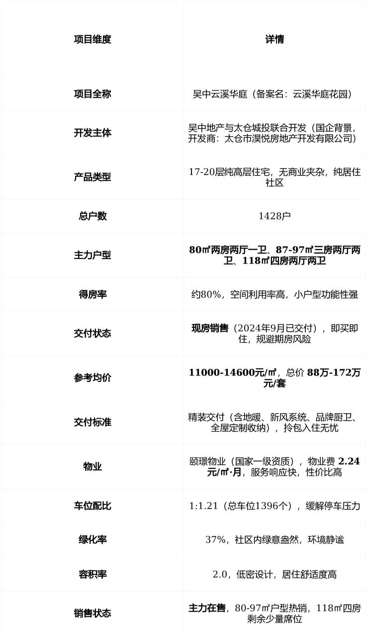 太仓区吴中云溪华庭优势最新项目笔记:主城核心的“现房+精装+国企”三重保障