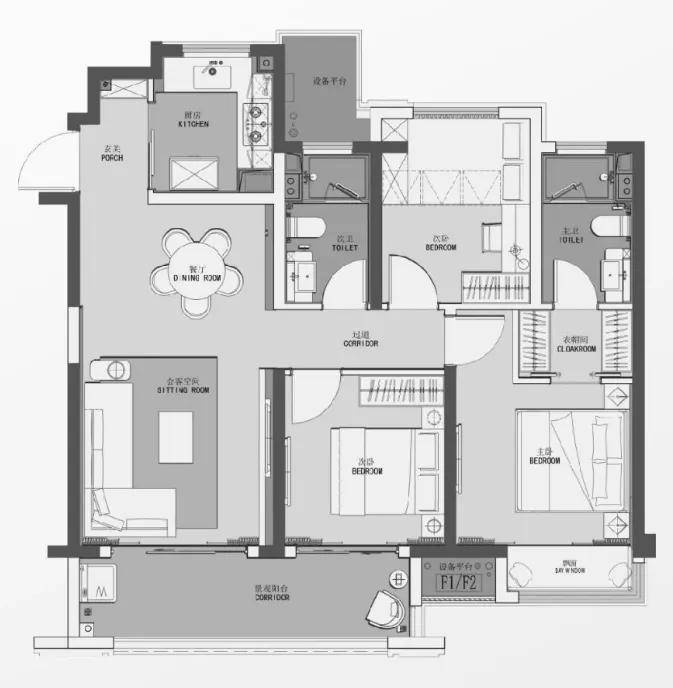 2、尊享主卧:主卧套房设计,专配卫生间,步入式衣帽间,彰显不凡