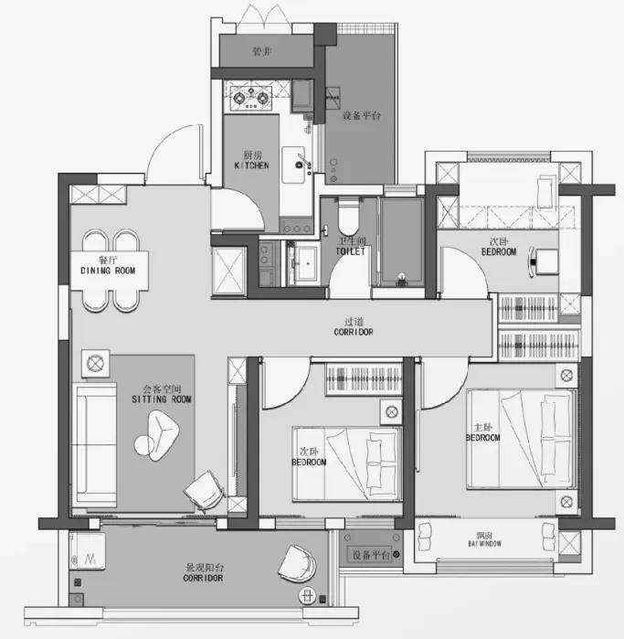 1、三房设计:多功能三房,人性化设计,满足家庭多重生活场景需求