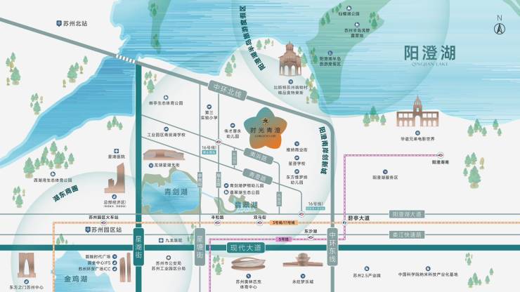 未来换乘地铁16号线(规划) 将在此设站,串联园区南北