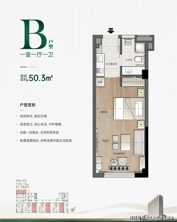 一室一厅一卫:约47.5-50.3㎡(B户型)