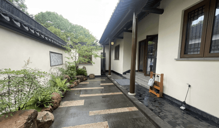独门独院设计,粉墙黛瓦、飞檐翘角,重现苏式园林典雅。