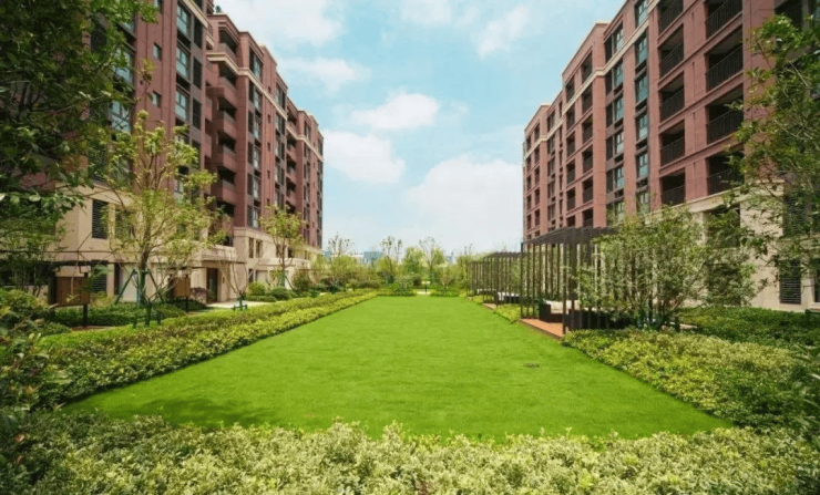 社区内部:三条景观轴(“一纵两横”)贯穿,水系环绕,园林设计融合江南与海派风格