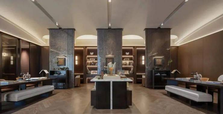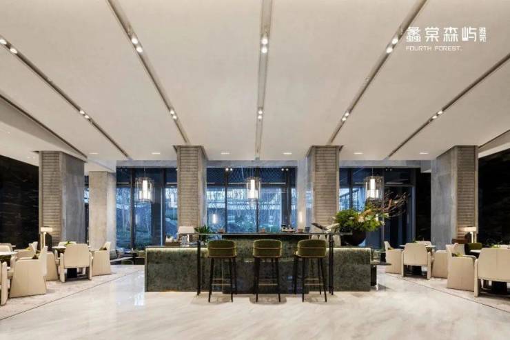 酒店式落客大堂挑高达7.5米恢弘之势,开启渐进式的礼序归家情境风范之间,让停留成为至高无上的仪式。