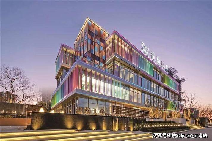 外立面设计:银灰色一体板 + 深玫瑰金铝板线条,LOW-E中空玻璃幕墙