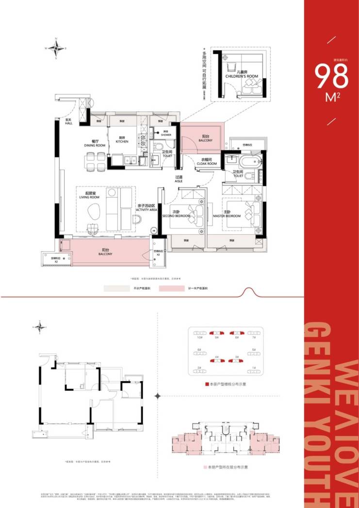 面积:98㎡(16、17F阔景小高层)