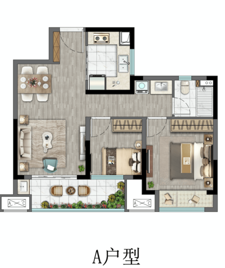A户型2室2厅1卫78m2