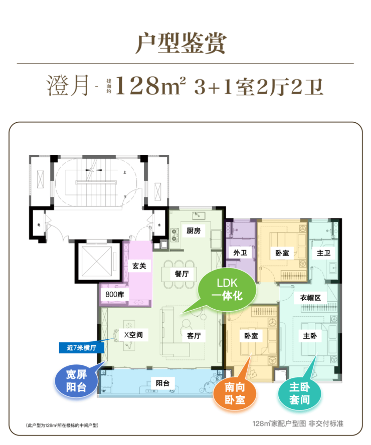建面约128㎡家配户型图(非交付标准)