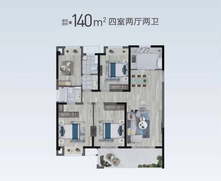双向观景阳台,以视野描摹城市繁华;餐客厨一体,扩容公区,盛纳宾朋相聚;双卧南向设计,阳光充沛,主卧套间规划,安享静谧生活;双卫全明设计,从容生活步调,优享洁净生活;