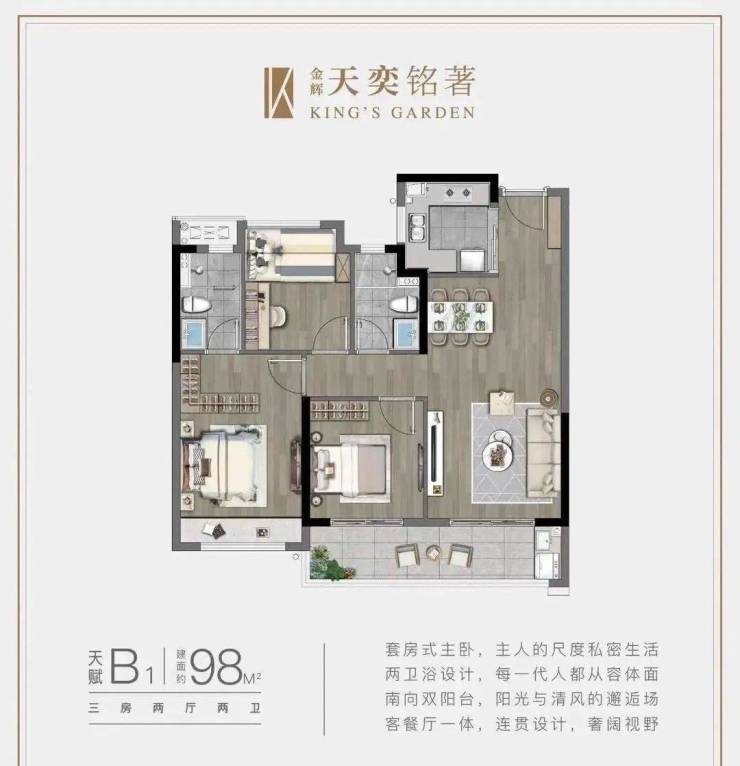户型面积:88 - 98 - 125平方米