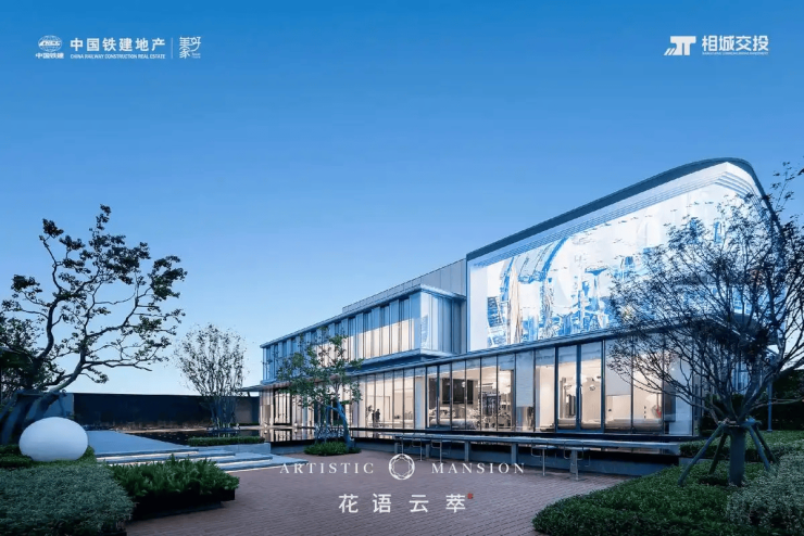 中铁建花语云萃是中国铁建地产TOP系"花语"产品线在苏州的旗舰作品,由千亿央企中国铁建与本地国企相城交投联合开发。项目定位为高端改善型社区,总建筑面积约45.64万方,容积率2.5,绿化率37%,规划2388户高层住宅,主力户型109-188㎡,精装交付均价约2.8-3.2万元/㎡。项目采用铝模工艺、全砼外墙等前沿技术,外立面采用一体板+金属线条设计,窗墙比达47%,呈现现代简约的都市美学。