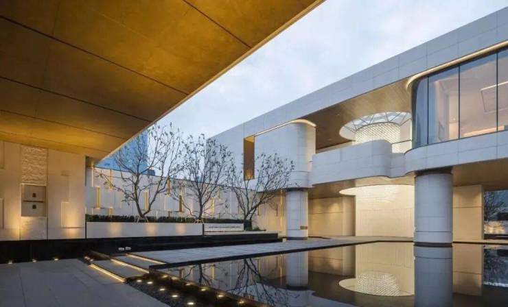 景观设计通过分析提炼昆曲剧场的元素,呼应碧波荡漾的江南水乡场景,融入昆山属地文化,结合昆曲水上剧场概念,打造四进庭院空间