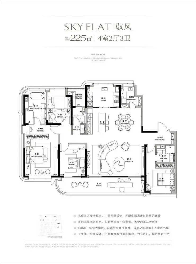 【建面约225㎡户型】:基本布局与建面约185㎡户型一致。