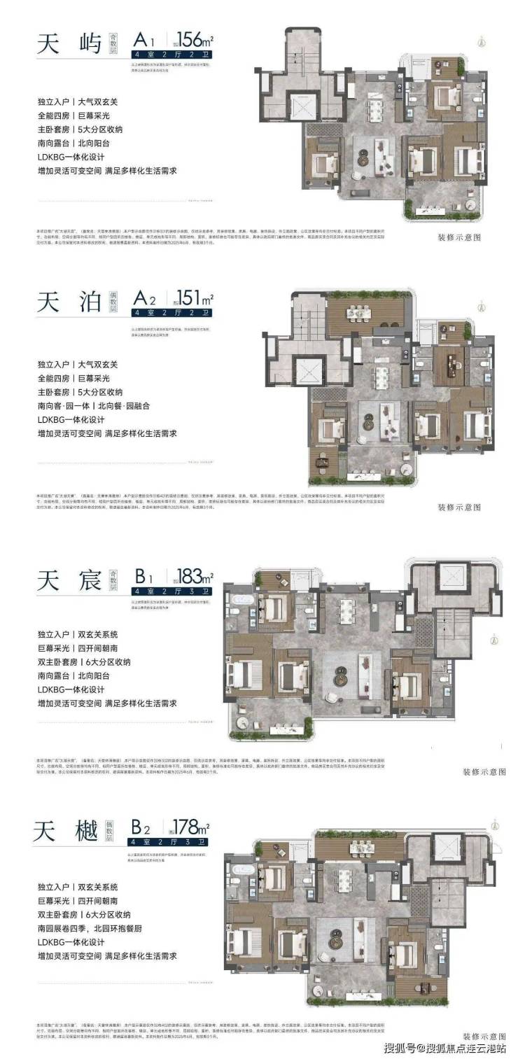 四园:以景观步道串连社区四重园林,取计成《园冶》景观命名,营造游园式度假归家体验
