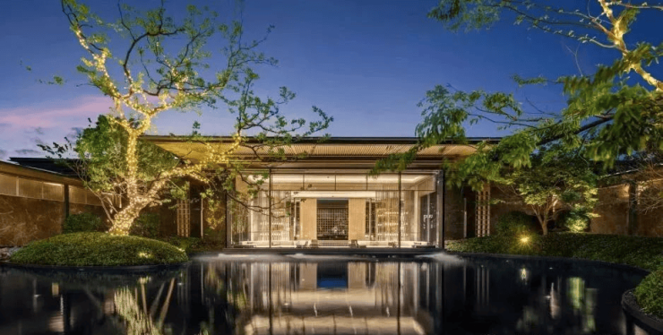 四時佳興:以诗意东方为境,前庭水景营造五座浮岛,彰显央企修为