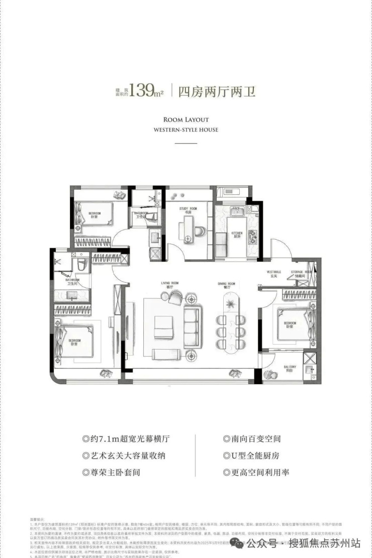 137-139㎡四房:满足改善家庭多代同堂需求,主卧套房+双阳台设计,提升居住舒适度;