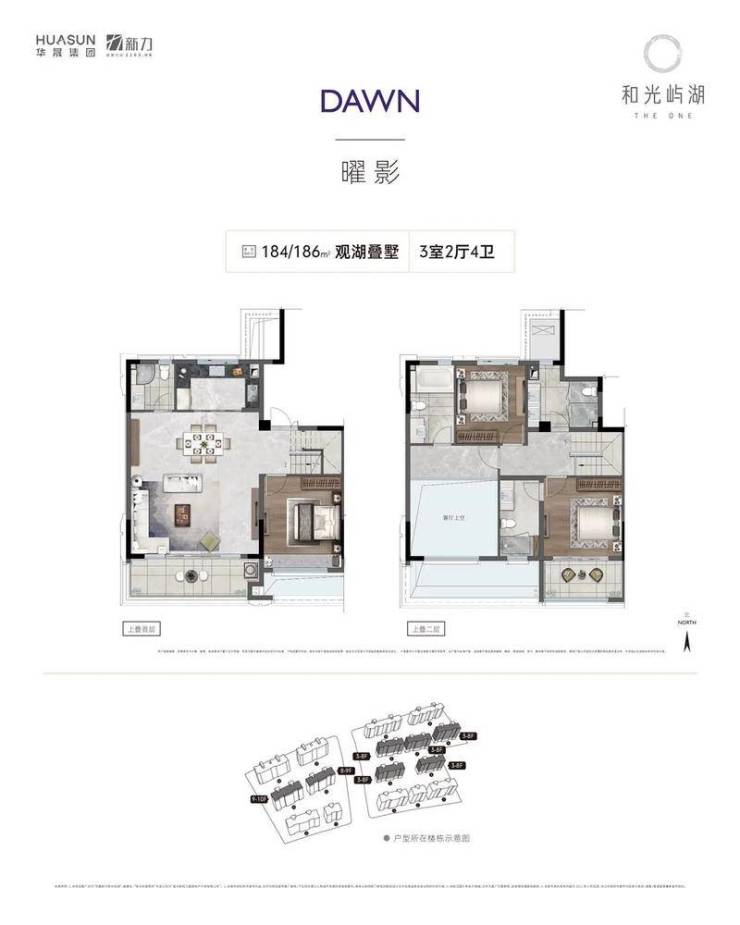 上叠:186㎡三层,总价428万/套起,赠送110㎡星空露台