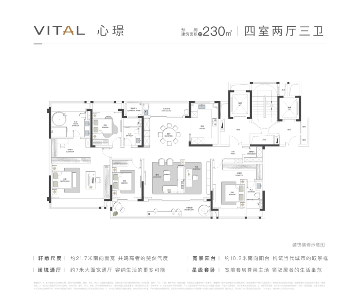 230㎡四居室:总价634-730万元,南向面宽超14米