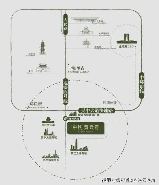 ◎发展之环:中环东接园区产经引擎,西融狮山创新脉络,南承太湖新城生态蓝图,北启高铁枢纽经济,便捷通达苏州多中心,启幕现代化城市发展新篇章。