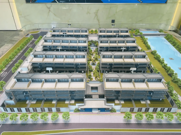 以“宋韵今形”为设计灵感,融合宋式美学与现代奢居,外立面采用伊朗进口“蓝眼睛”奢石、铝板和大面玻璃(三玻两腔工艺)。