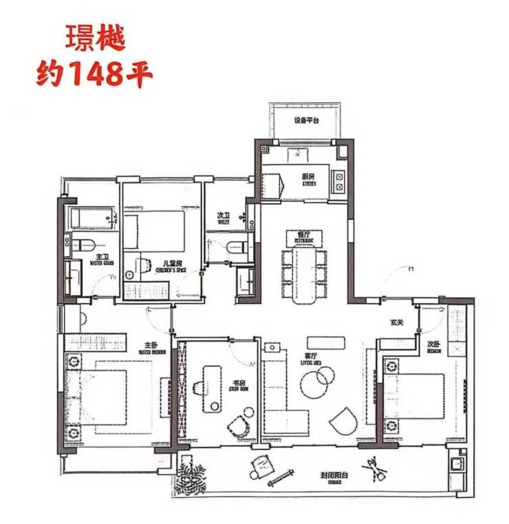 户型设计:全部采用大横厅+宽景阳台设计,部分户型达243㎡
