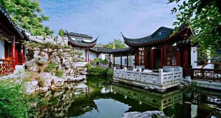 建筑工艺:由"香山帮"非遗匠人纯手工打造苏式园林,粉墙黛瓦,一院一景