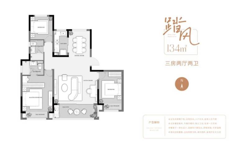 主力户型:包括3室2厅2卫(建面约113㎡、134㎡、143㎡)和4室2厅3卫(建面约182㎡~184㎡),满足不同家庭的居住需求。