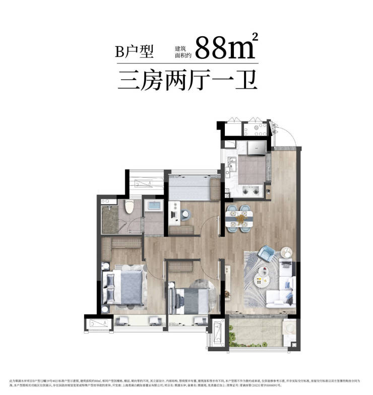 得房率高 :88㎡户型实际使用空间≈普通高层105㎡, 无公摊陷阱 。