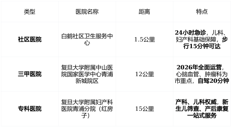 🏥 医疗:急诊不远,三甲不慌
