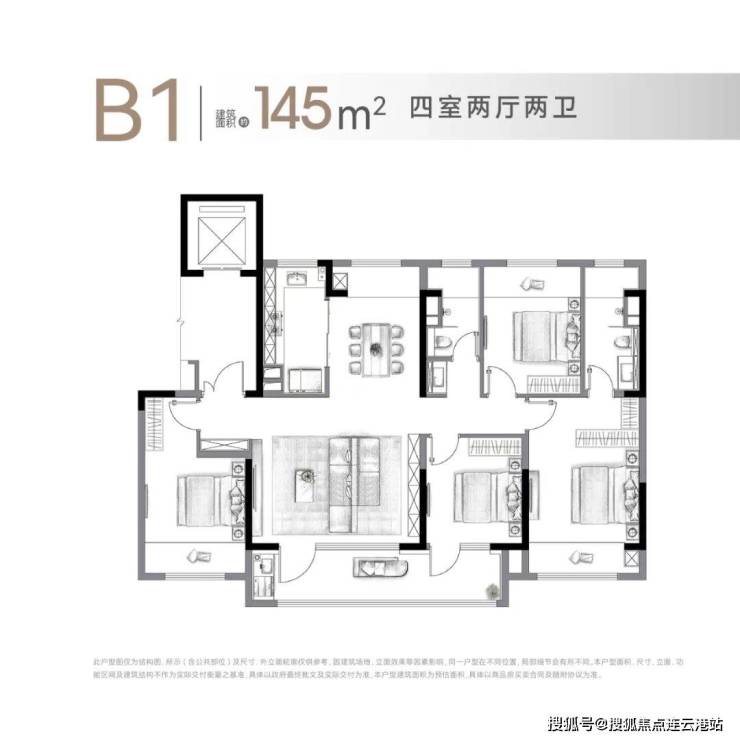 145㎡四居:单价23000-25000元/㎡,总价约335-360万/套