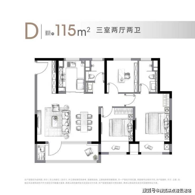 115㎡三居:单价20500-23000元/㎡,总价约240-260万/套