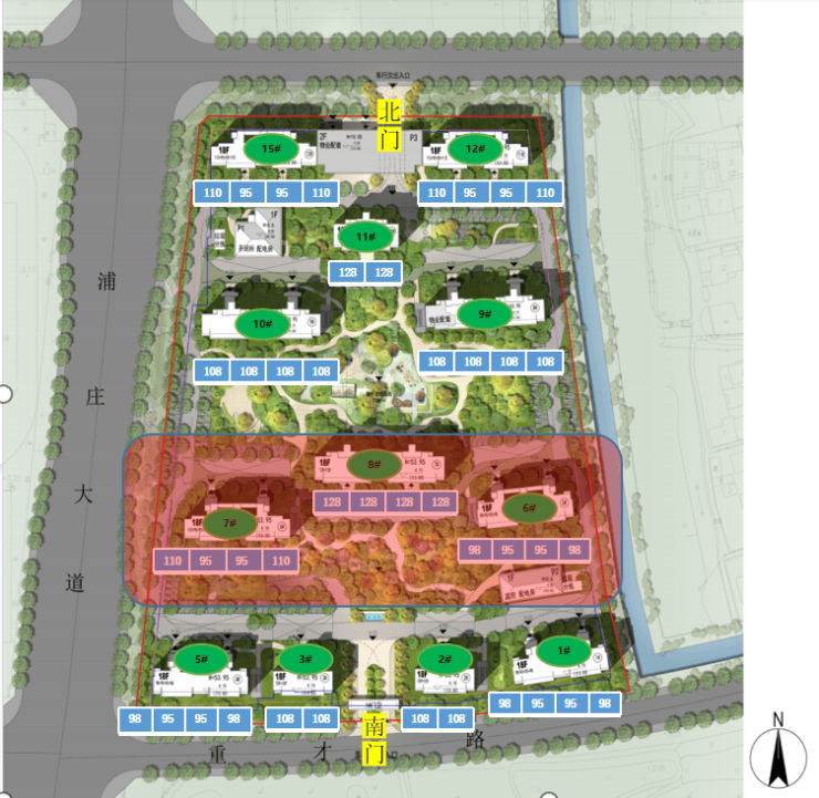 配套上,项目绿化率37.2%,容积率2.2,规划了12栋18层小高层。交通上靠近浦庄大道和重才路,周边有公交站(如521路、521路支线),未来还有规划中的轨交15号线和7号线。教育方面,临湖第一小学和中学在附近,未来可能纳入中国中医科学院大学附属体系。