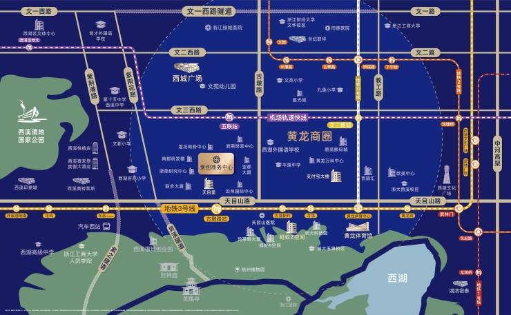 【交通】3号线古墩路站,直线距离600米到19号线五联站,1.2公里到2号线丰潭路站