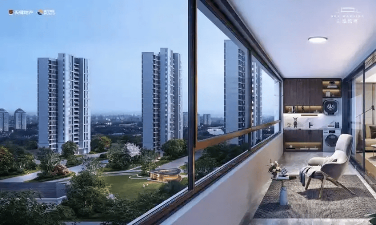 空间设计:私家电梯入户,4+2房布局,超宽客厅(约5.7米面宽)连接露台,主卧套房带观景飘窗,顶层露台可打造空中花园。
