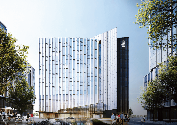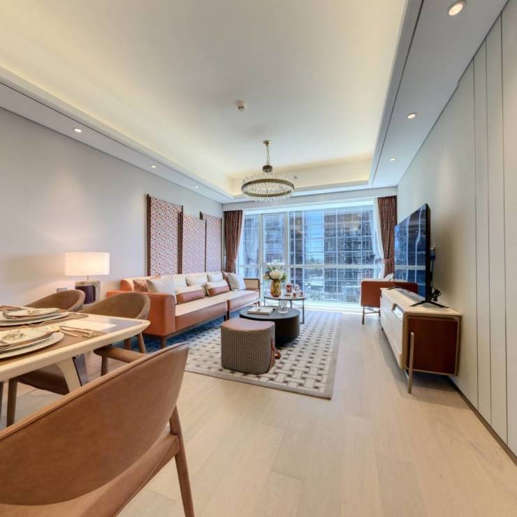 自带综合体含奢侈品购物中心、丽思卡尔顿酒店、园林式商业街区