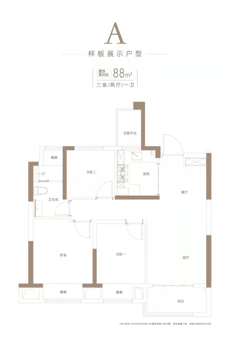 主力户型为88㎡、98㎡、118㎡三至四房,得房率约75%-82%,户型方正、动静分区明确,全明采光,空间利用率远超同板块竞品。
