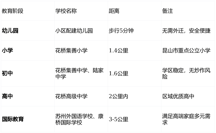 项目教育配套在花桥板块属第一梯队,实现“从幼儿园到高中”一站式覆盖: