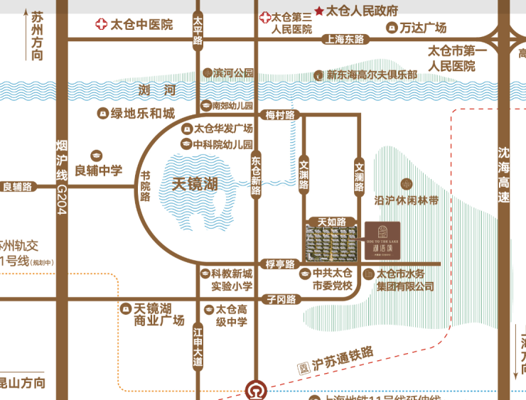项目地址:太仓市科教新城天镜湖东,桴亭路与文渊路交界处