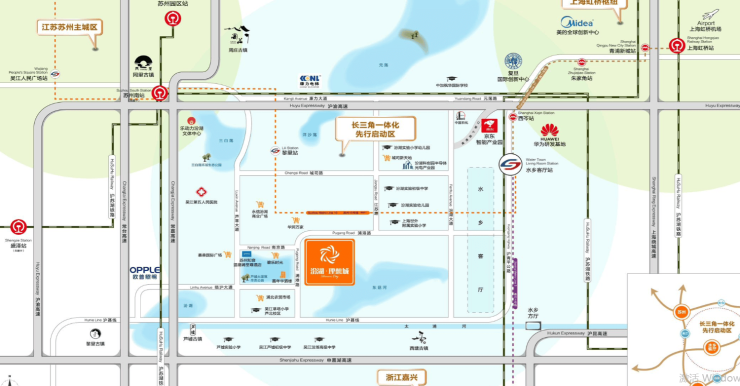 长三角核心位置 :地处江苏、浙江、上海两省一市交汇的“金三角”腹地,自驾30min可达上海青浦,真正实现“沪苏同城”生活。