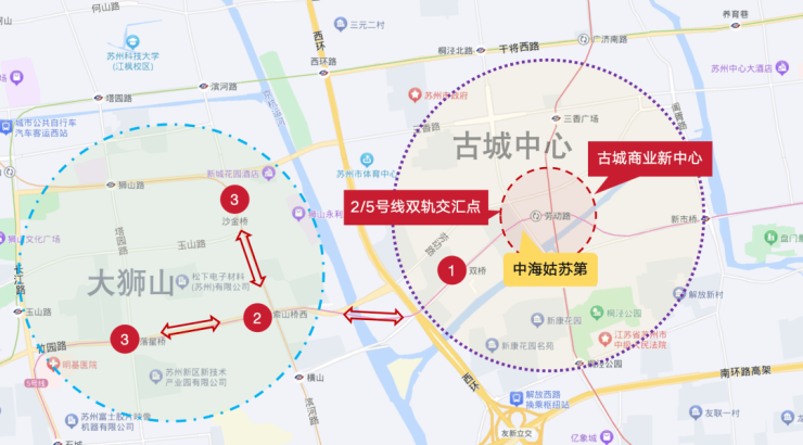 从地图上看,中海姑苏第直接被5大商圈包围,众星捧月↓↓
