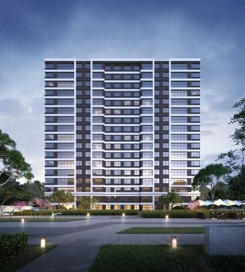 社区景观:开放式公园社区,设计“双轴一环三庭五园”景观体系