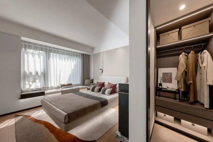 主卧套房的设计,除了配备舒适的浴缸,还预留了梳妆台和衣帽间的位置,足以让女主人心动。