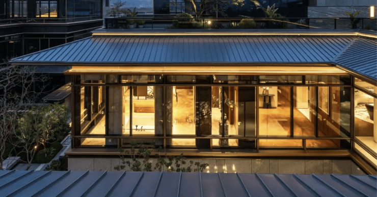 项目采用建发标志性的新中式建筑风格,溯源宋代美学,通过现代材料与工艺实现古典美学的现代表达。建筑为低密布局,容积率低,确保每栋建筑拥有充分的采光、通风与景观视野。设计上注重庭院空间营造,每栋独栋均规划有前庭后院,并设有大面积露台,将自然引入办公环境。